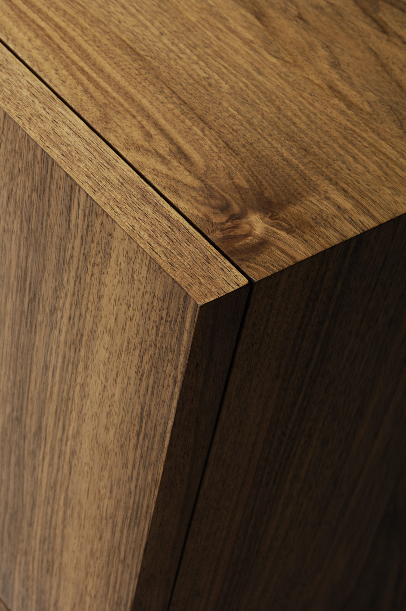 这款小巧的内阁采用美国黑胡桃天然涂油灯和黑色乌木缎底设计而成。 大型定制弧形实心黄铜手柄环绕四扇门。