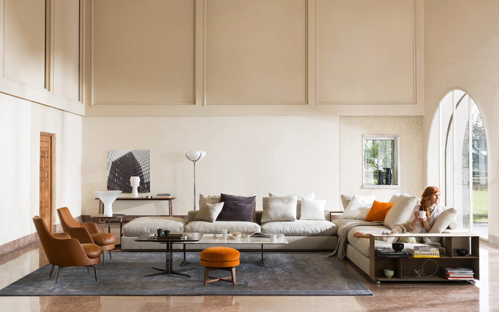 Guscio SOFT是Flexform的扶手椅,框架采用硬质聚氨酯。 座垫采用弹性内芯羽绒。 Guscio SOFT有多种面料或皮革面料可供选择,是任何家居的理想选择,增添舒适而时尚的座位。
