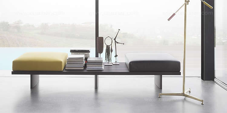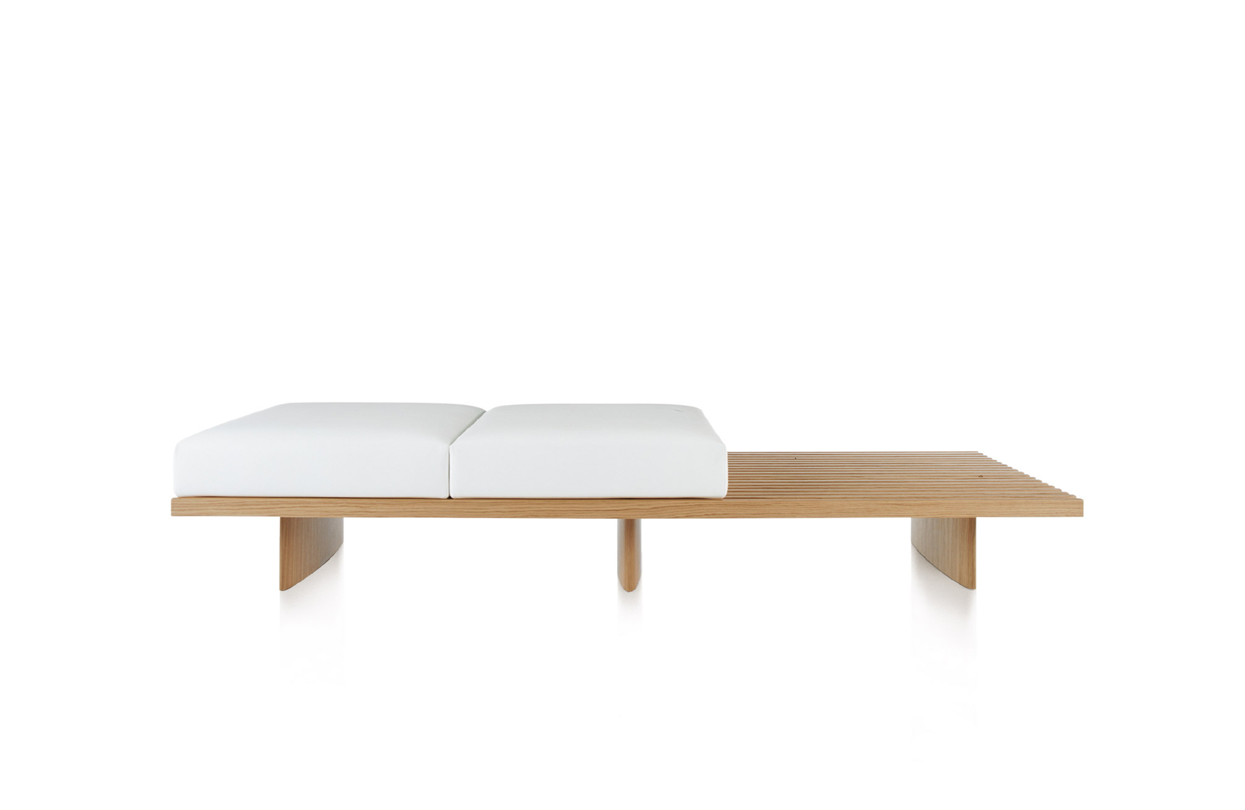 用作矮桌、长凳或和只需配备靠垫就能成为软榻的模块化系列。框架采用天然木色或黑色橡木。表面由19根板条组成;采用两条或三条支腿。软垫采用聚氨酯纤维和喷胶棉填充,用于扶手、座面,配对软垫: 一个座垫和一个靠垫。使用简单的固定装置就可将软垫固定于框架上。软垫可自由定位于表面的任何部分;因此,可使表面按照所需的尺寸用作座椅底座或顶面。
