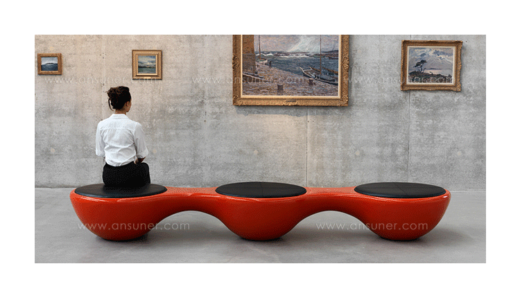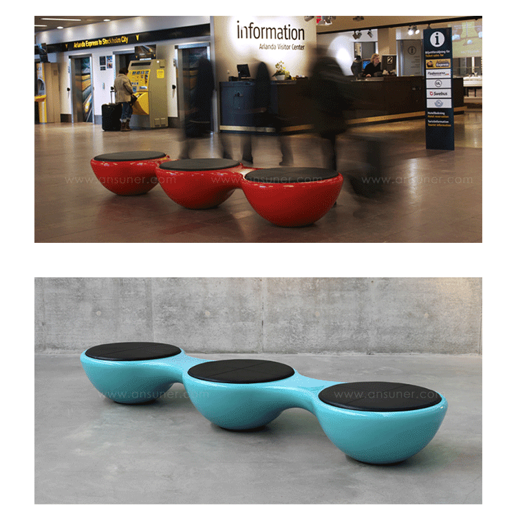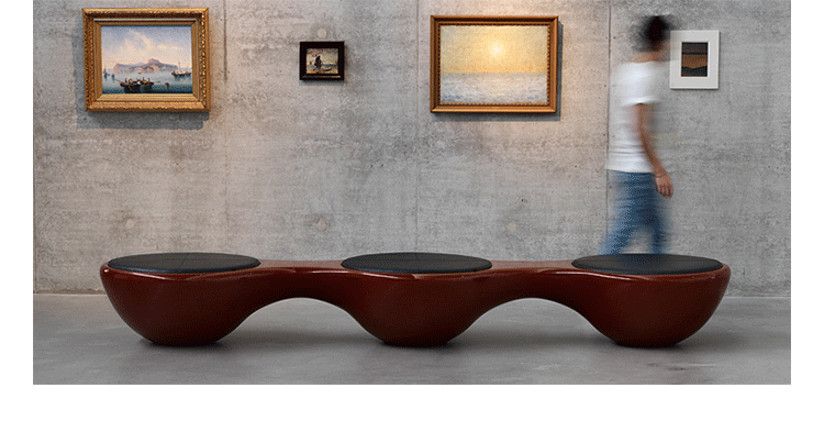 瑞典设计师Jangir Maddadi设计的这款联合座凳系列,可分为双座,三座及多坐,我司主要推出两座及三座,分别为:Union 2-seater Bench(联合双座凳)和Union 3-seater Bench(联合三座凳)。大家都知道,一般的座椅都是可以一个人或多个人一起坐,相互之间都不会受到影响。而这款连体休闲座椅却不同,外形很像一只陀螺,使用起来很像一个不倒翁,上面最多可以坐四个人。但是设计师并没有将这样的座椅让它们独立出现,而是用三张同样的座椅链接在一起,并且形成一个90度的直角,这样无论是陀螺还是不倒翁,都会很稳定的供给我们使用。当然,理论上来说,生产这种椅子,不仅可以做3件连体,4个,6个……都可以做。只是要考虑运输问题,或许3个是最完美的。这款连体休闲座椅不仅外形很优秀,而且还更加实用,使坐在上面的人有更多的空间,而且还可以保持面对面的互动。