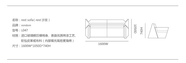 Rest系列由一张咖啡桌Rest Coffee Table(Rest 咖啡桌),一张沙发Rest Sofa(Rest沙发)和一把椅子Rest Lounge Chair(Rest 休闲椅)组成,系列设计灵感来自日本折纸艺术ORIGAMI,采用模块化结构,允许您自由地使其适应您个人任何的空间需求。所用的制造工艺是旋转成型技术,这个技术可通过最微小的细节来保证最高质量的最终产品。设计者忠于优雅、 美丽、排他性以及消费体验。通过明确的、 立体几何且优雅和明亮的造型手法,一个富有创造性的新系列因运而生。它们有着现代风格的设计,别具个性的特色,为其用户提供了最大的舒适度和完全符合创新的体系结构。
