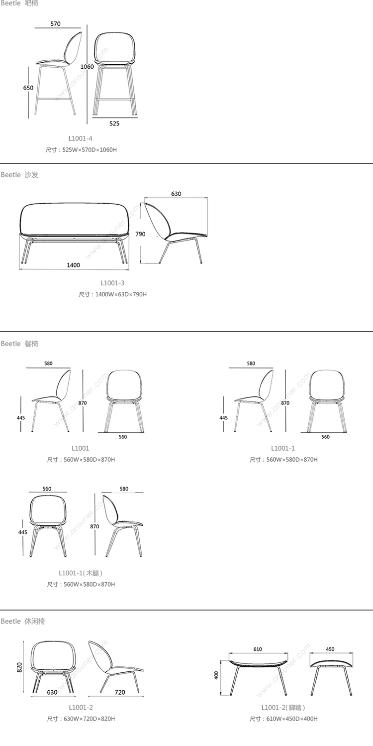Beetle 吧椅 系列尺寸/示意图