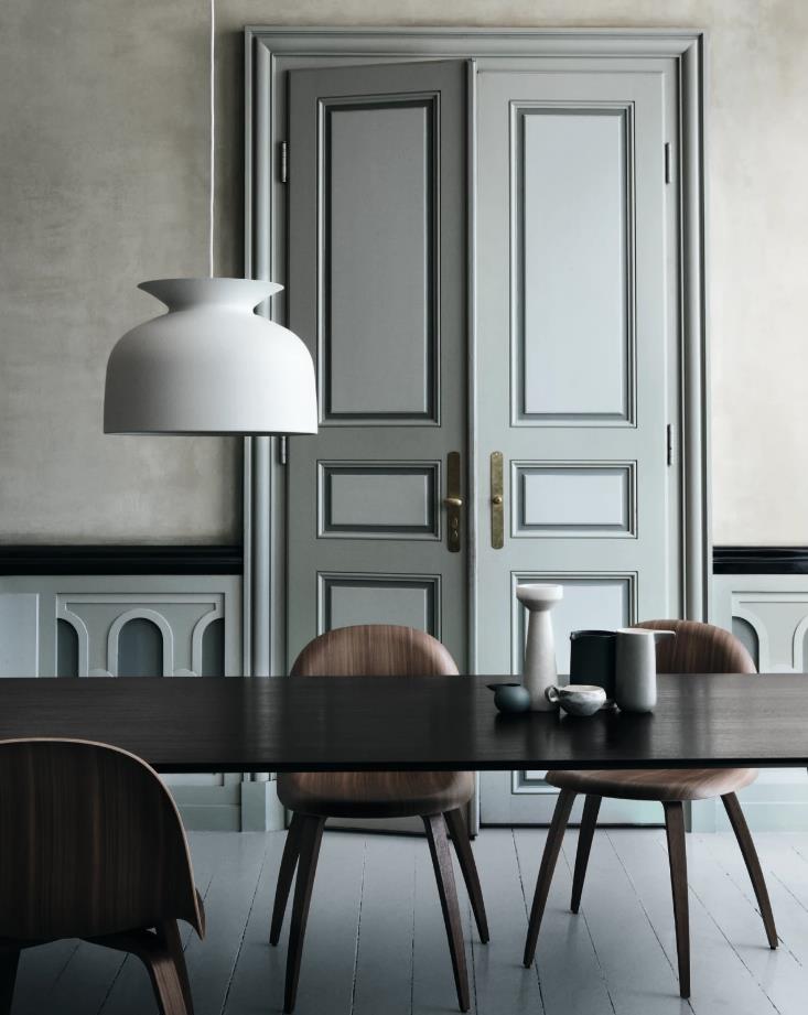Ronde吊灯是Oliver Schick为Gubi设计的第一款产品,于2013年设计。钟形件参考了传统的吊灯和20世纪70年代闪电设计的全盛时期。 然而,在一个现代的解释。 一个独特的细节是顶部的开口,带有悬垂的衣领,让人想起花瓶或双耳瓶等罐子。 在这种设计中,光线从喷口状开口扩散开来,在电线和天花板上投射出光滑的光线梯度。