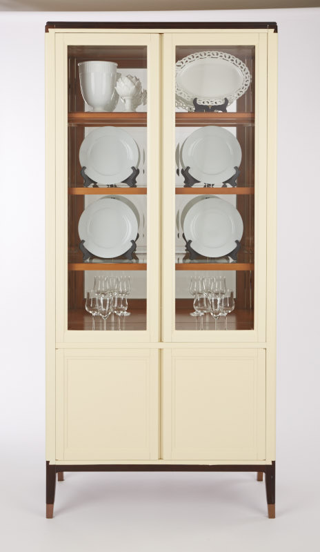 采用燕尾榫造型的拉手,符合成年人手型,不费力即可轻松打开;进口隐藏式铰链;铜脚,赋予中式韵味的同时以防磨损。直线的简洁设计同时满足展示和收纳的功能。
