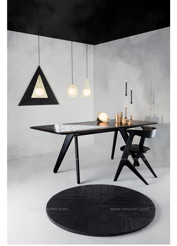 用黑色或天然漆进行处理。 Slab集合包括凳子,椅子,餐桌和桌子。