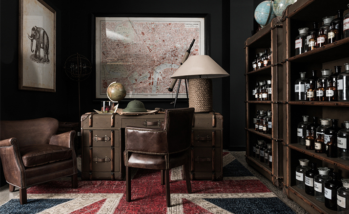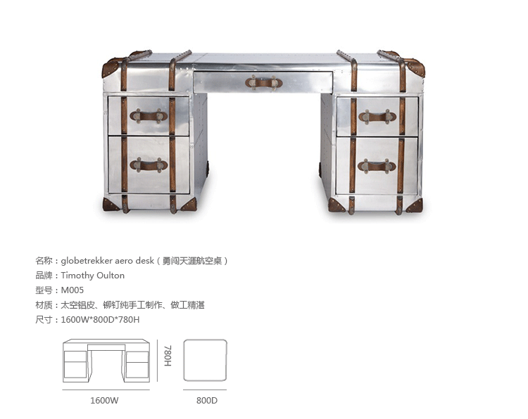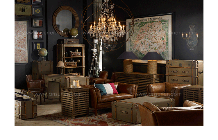 "慵懒、我行我素、精致、时尚,还有那么点怀旧的味道,Timothy Oulton家居的产品就是用这些无可替代的特点,征服了各国的英伦家具爱好者们。重提浪漫时代的长长的豪华海上航行,Globetrekker 系列的灵感来自Timothy Oulton于1914年在一个古董市场发现旅行箱,他深深的被复杂细节和美丽的黄铜板的旅行箱迷住了,Oulton拆解了那个古色古香的旅行箱并进行重新设计出一系列作品,它涵盖的灯表、 箱子、 咖啡桌和书柜等集合。捕获真正的魅力,还原精致工艺的旧古董皮箱的精髓,通过怀旧的贴纸饰面样式,采用老木、优质的老式皮革和黄铜铰链,通过精湛的手工处理完成了这套系列。