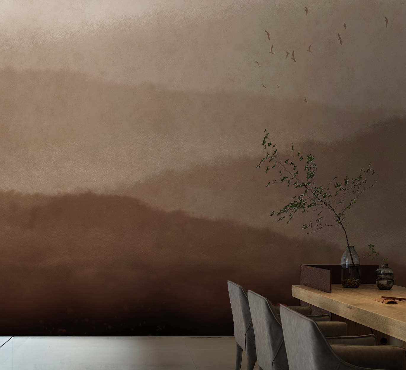 自然生活系列意在通过绘画的方式转述自然之美,在倡导生活回归自然的当下,我们以生活情感为切入点,在喧嚣的时代,找出能直接引起人们共鸣的那个点,让自然元素在设计师的笔下,演绎成新颖而独特的空间美感;在这里,美没有标准,没有终点,只有通向自然生活灵魂的 艺术之路