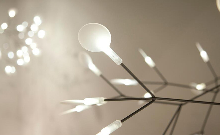 The decorative LED lamp inspired by the Heracleum Plant now comes in two sizes. Theleaves ramify from a branch creating a very technixal,natural structure,By using the technique of coating conductive layers.Adesign not possible with normal wires.