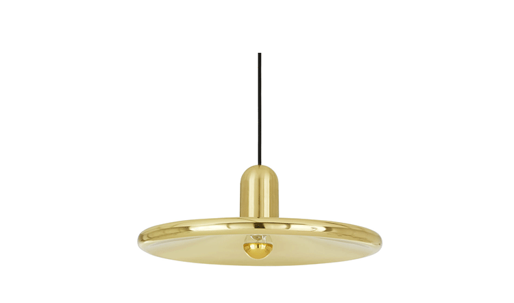 The Tom Dixon Spun Pendant Lamp is an unexpectedly simple brass disc with a fat tubular edge is recast as a minimal pendant lampshade that hints at a Space Age, Deco or Pop Art aesthetic.Acting as a golden reflector for the crown lightbulb, the Tom Dixon Spun Pendant Lamp casts an ambient glow and can be hung in multiples or as a single pendant.