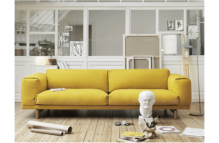 挪威设计事务所Anderssen & Voll为丹麦家具品牌Muuto设计了“Rest”沙发系列。这组家具是在挪威西海岸制作的,包括三人沙发、双人沙发和脚踏——每个设计都带有内嵌式靠垫,表达了设计者对空气美学的理解。“我们希望通过一种轻质诱人的外观创造一个有机的,以人为本的沙发系列,不会在舒适度上作出妥协。”Anderssen & Voll解释说。“沙发坐垫上的水平分割线十分重要,它能在家具底部增加额外的舒适度”。