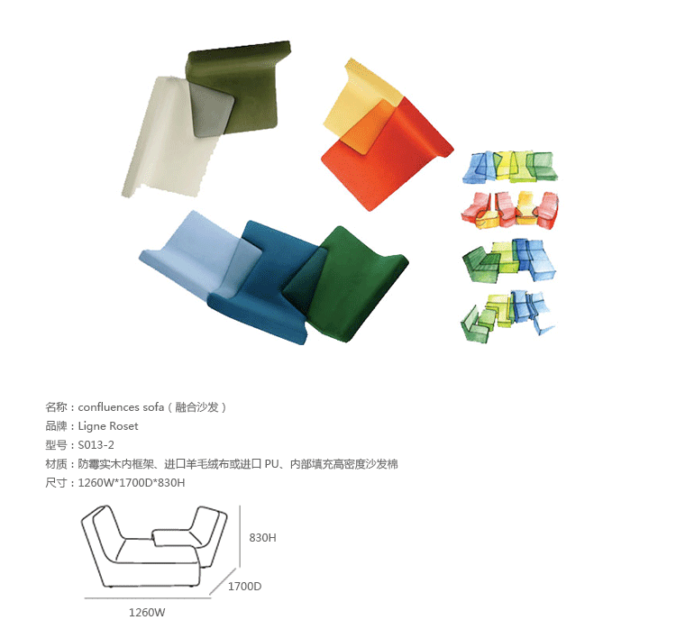 法国写意空间公司(Ligne Roset)在今年的科隆国际家具展上展出了这一款Confluence模块沙发,并获得了最佳设计奖(Best of Best)、最佳项目奖(Best Item)及最佳系列奖(Best System)三个奖项。Confluence模块沙发由法国设计师Philippe Nigro设计,这款沙发非常规的外型构造突显了设计师非凡的想象力和创造力,其相互交汇的构造看上去就像拼图一样充满趣味,而这种造型无疑也会给其陈设空间带来一种新鲜感。Confluence模块沙发可让使用者随其心意而将不同颜色、不同形状的模块搭配成各种组合,这也使其为体型不同,审美有异的各类人群都提供了个性化的就坐方式。设计师的创作灵感来自于现代美术作品中重叠的图形和笔直的线条,而略去了传统家具设计经常遵循的对称原则。Confluence模块沙发由多层木板和焊接钢片作为框架,内部由各种密度的聚醚泡沫材料填充,其表面面料为聚酯纤维织物,沙发脚由黑色聚丙烯制成。Confluence模块沙发各部分间相互重叠与镶嵌的方式令人眼前一亮,实用而有趣,满足了外型的美观而又充分体现了强大的功能,这应该是每件家具都追求的目标吧。