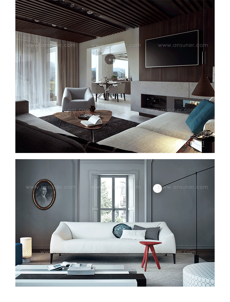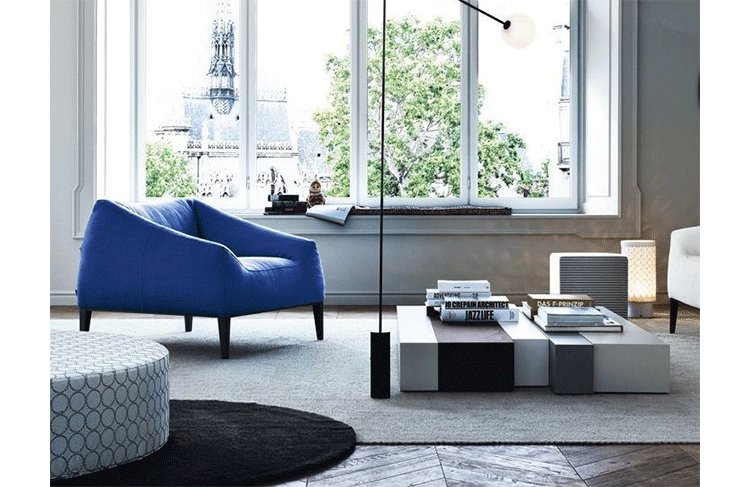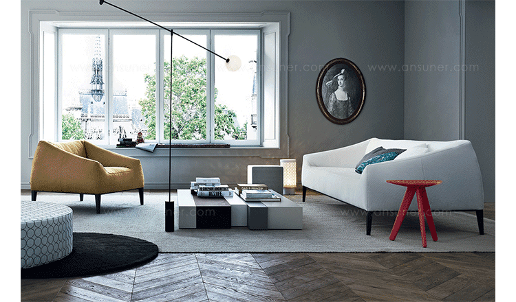 法国建筑师Jean-Marie Massaud设计的Carmel系列家具宽大轻盈。这套沙发包括沙发(两人)、扶手椅和沙发凳,结构采用模压聚氨酯软材料,支腿为铝合金,涂漆或软包皮革。有两种面料选择:无纺布或可拆洗的沙发套和不能拆下的天然皮革。靠背有口袋的沙发椅没有带沙发套的款式。