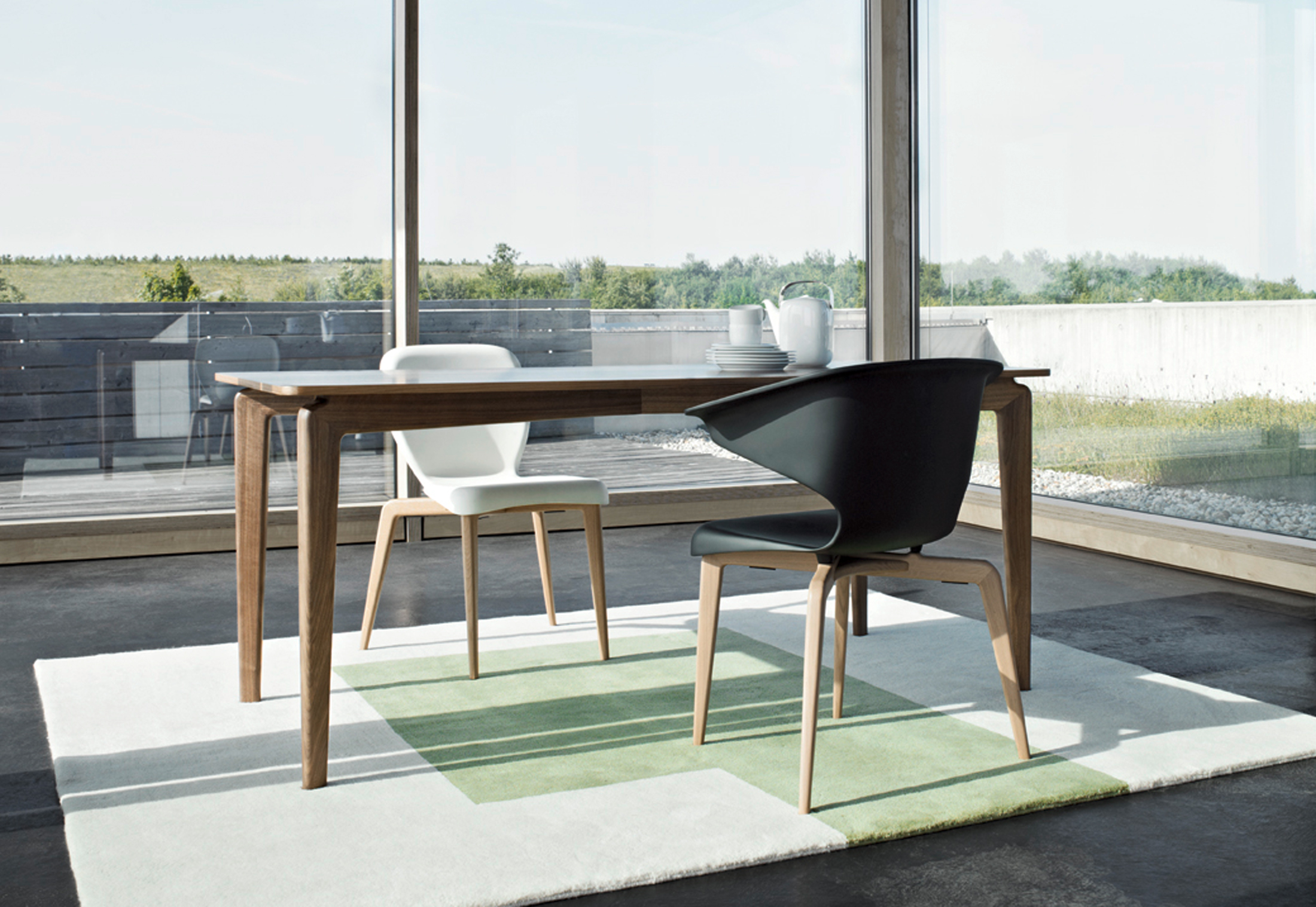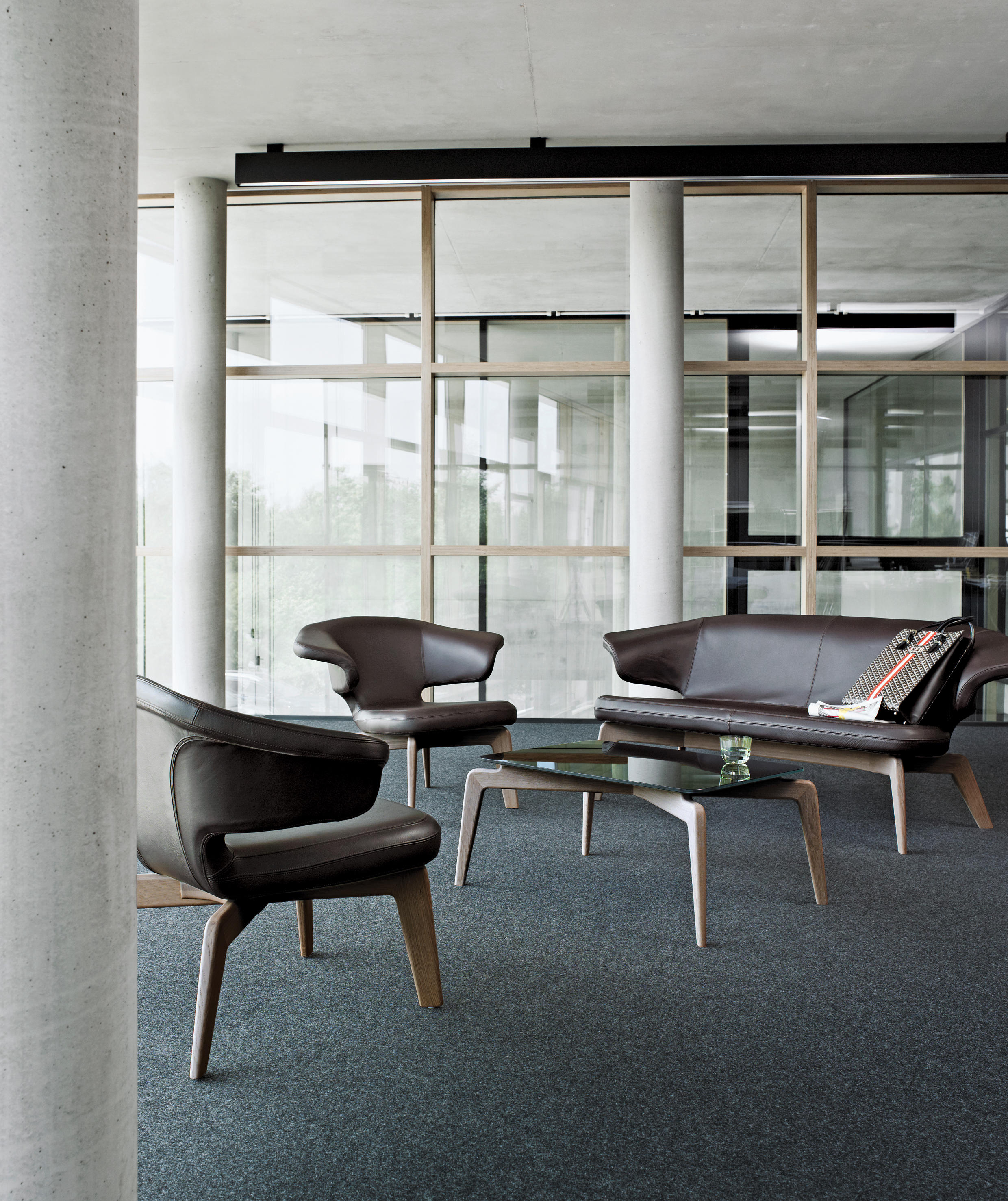 "Munich Chair (慕尼黑椅)是设计师Matthias Sauerbruch和Louisa Hutton共同设计的。实木框架,鲜明的涂漆或黑染色,钢管与框架橡胶织带。座垫填充聚氨酯与涤纶纤维,表层覆盖织物或皮革包裹。20 世纪和 21 世纪的现代艺术值得拥有这样的恰当的家具布置,同时也是现代化的家具与建筑。柏林建筑师Sauerbruch Hutton因此面临着令人兴奋的挑战,当他被要求设计德国慕尼黑的布兰德霍斯特博物馆(Brandhorst Museum)。2009年开馆时,他为为食堂、 门厅、 会议和讲座室,以及休息室制定了三种不同的座位解决方案。ClassiCon 开发的系列生产与建筑师密切协作。同时要求在形式和质量方面的期望上,家具在公共空间中将会面临典型磨损和撕裂也不得不加以考虑。设计通过各种测试,确保了其耐久性。"