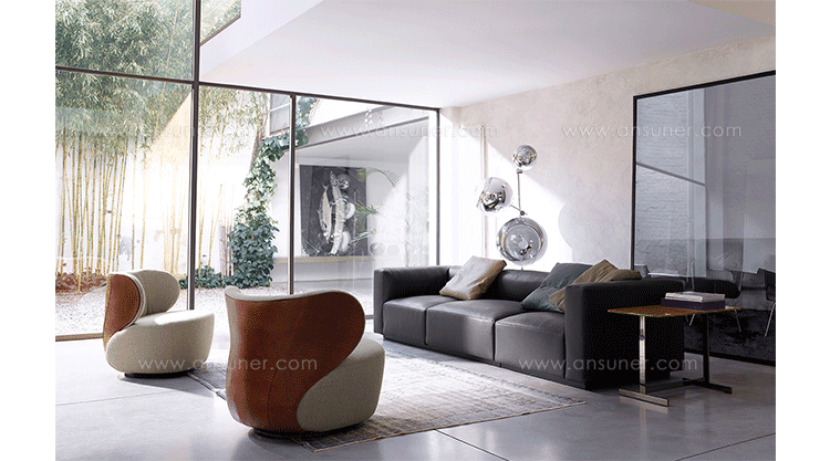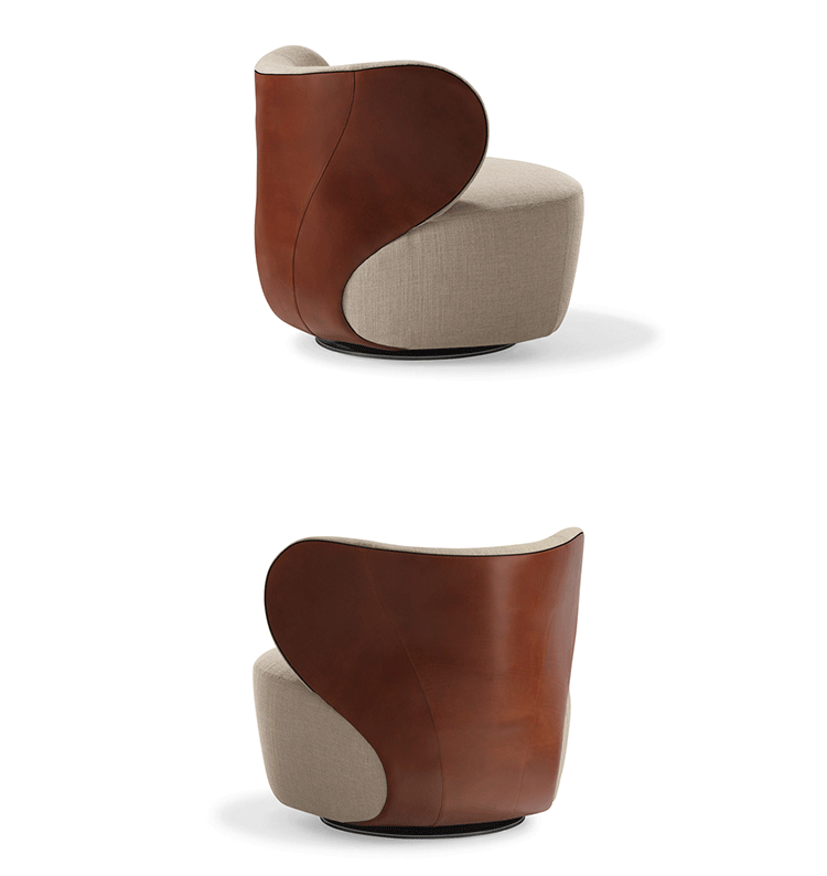"宽敞和圆润,优美的曲线设计正是Bao Sofa(Bao沙发)最吸引人的地方。华丽的雕塑艺术的靠背,皮革拼凑在一起形成一个球状的样子。流畅的线条--简洁和优雅。扶手椅上结合材料,同时保持它们鲜明︰优雅马鞍皮革座椅背,纺织着天然织物。Bao Sofa(Bao沙发)就像给您一个欢迎的拥抱。新颖独特扪面方式:织物和皮革组合,扶手及整个座椅完全覆盖在织物或皮革。"