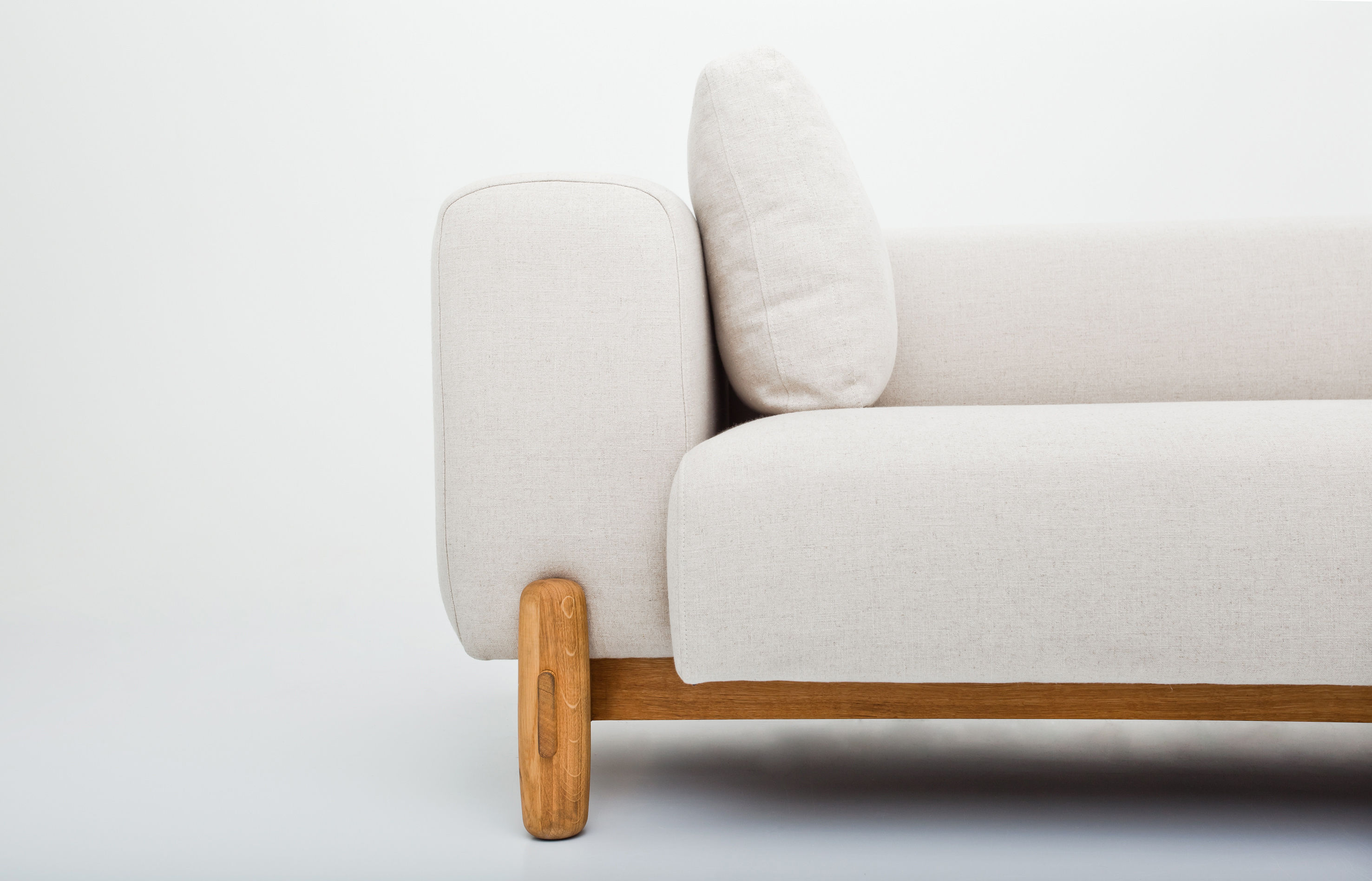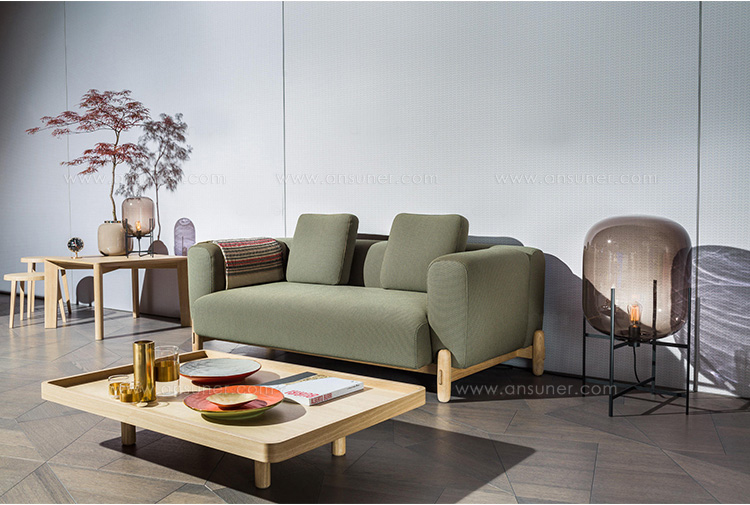 块辅以简单的构造形态的独特结构的腿,这是实木做的。 这种关系让沙发上强烈的个性,同时使其保持谨慎的家具。