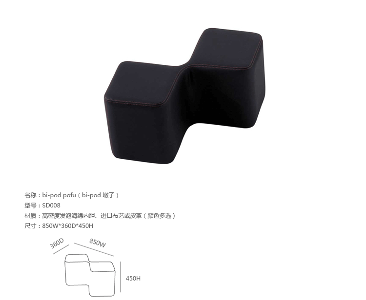 Bi-Pod Pofu(Bi-Pod 墩子)是设计师 Cédric Ragot 为Roche Bobois 公司设计的现代化的搁脚凳,采用高密度发泡海绵内胆、进口布艺或皮革制成,有7种颜色可选。创意来非常有趣的俄罗斯方块或者拼图游戏,可以多个组合。