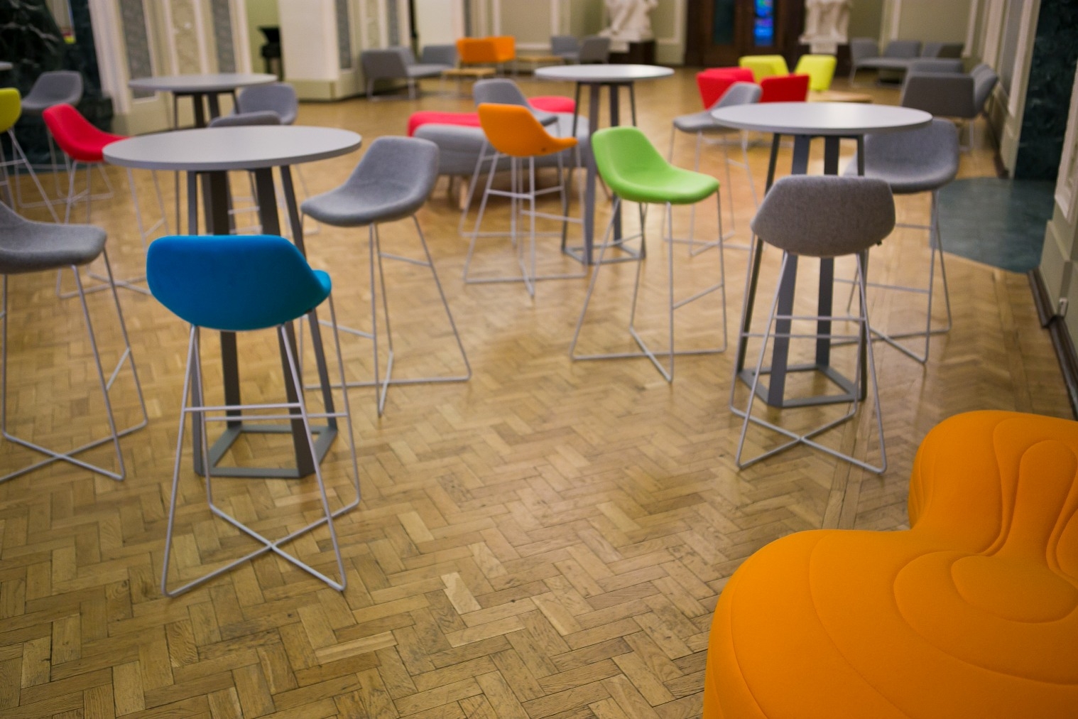 不规则的、变形的沙发形式允许创造一个不寻常的公共空间。这些模块是用木制的腿,小的隐藏的腿,这样沙发看起来就像是直接躺在地上,或者悬挂在绳子上,给人一种漂浮在空中的感觉。设计的主要特点是有可能在功能和外观方面提供不同的基础。这些座椅有两人位和三人位型号可供选择。