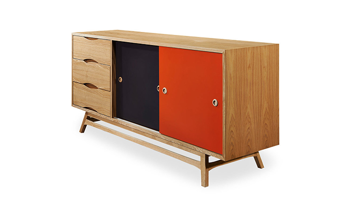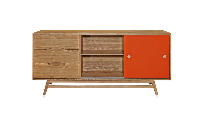 colorpop modern retro credenza(colorpop现代复古书柜)是Kardiel公司制作的经典实木家具。复古但永不过时的木炭是和橙色,结合美国核桃开创了20中世纪六十年代中现代主义的时代。在现代主义的存储家具上, Finn Juhl和 Arne Vodder 最先尝试胶木和天然木的组合运用。这是大胆的创新,他们结合传统的新鲜的新兴技术与现代主义的概念。他们通过这些色彩绚烂的产品所实现的是令人印象深刻的比例的平衡。流行的橙色和木炭色在现代主义风格上所达到的是受人尊的崇永恒。制作采用精选MDF板基材胡桃木或水曲柳木皮贴面、胡桃实木或水曲柳实木脚架、环保油漆喷涂、做工精湛。
