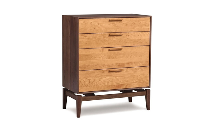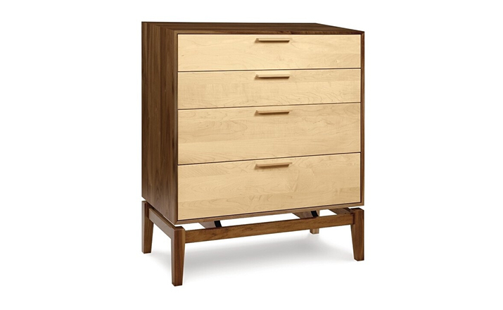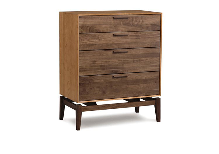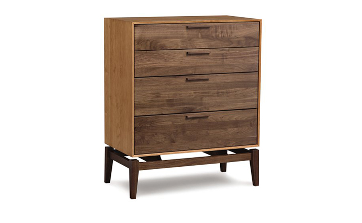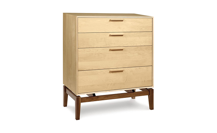 copeland soho 4 drawer dresser(科普兰soho 4抽梳妆台)是Copeland Furniture公司copeland实木系列之一。我们塑造环境,然后环境塑造我们,copeland旨在传递的舒适度和清晰度的感情。设计借用了一些最优秀的传统和当代的设计要素,非常具有特色。这个中世纪现代风格的设计,提供了4层平滑抽屉存储空间,可以使您更好的归纳自己的物品,提供大量存储空间。制作采用精选MDF板基材、进口美洲胡桃木,贴面、实木脚架、彩色装饰边、环保净味油漆喷涂、做工精湛。