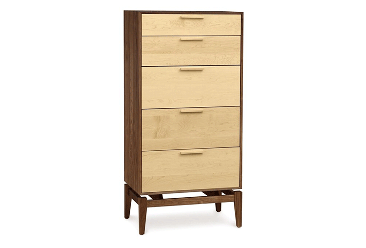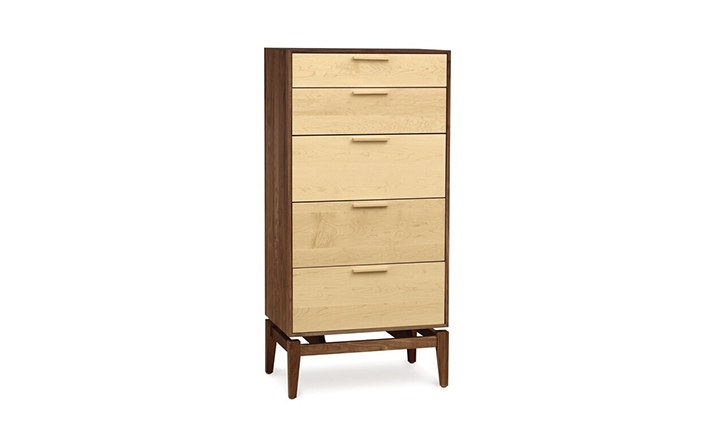 copeland soho 5 drawer dresser(科普兰soho 5抽梳妆台)是Copeland Furniture公司copeland实木系列之一。我们塑造环境,然后环境塑造我们,copeland旨在传递的舒适度和清晰度的感情。设计借用了一些最优秀的传统和当代的设计要素,非常具有特色。这个中世纪现代风格的设计,提供了5层平滑抽屉存储空间,可以使您更好的归纳自己的物品,提供大量存储空间。制作采用精选MDF板基材、进口美洲胡桃木,贴面、实木脚架、彩色装饰边、环保净味油漆喷涂、做工精湛。