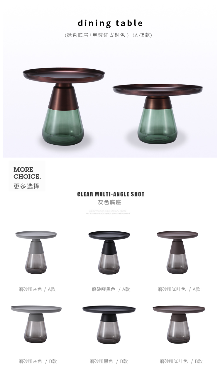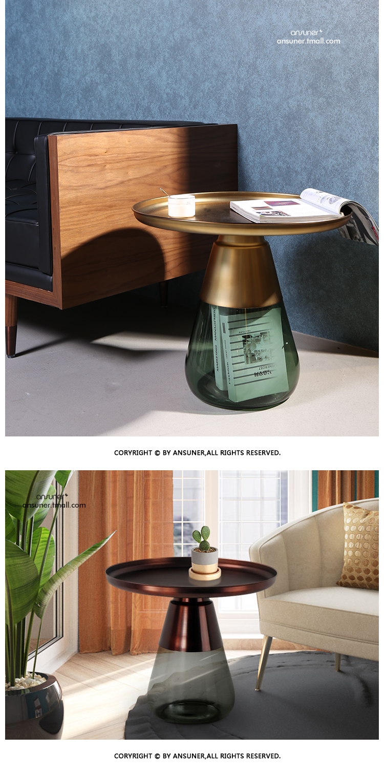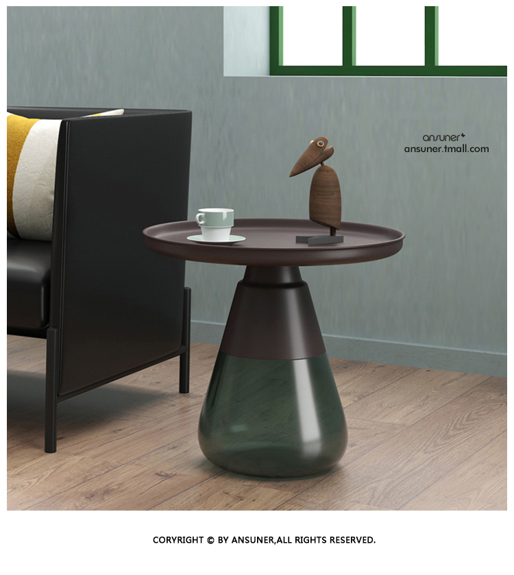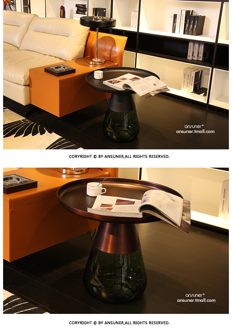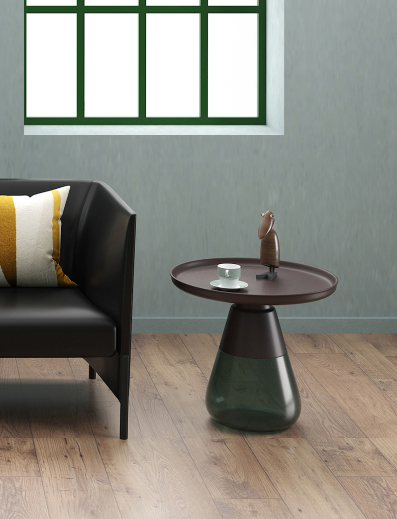 这款半透明带有色彩的玻璃和铝合金组成的手捧咖啡几,有着穿越历史长河的影子,竟像是宫廷画中拿出来的一般,底座的玻璃带给人温润如玉的视觉和触觉的通感。