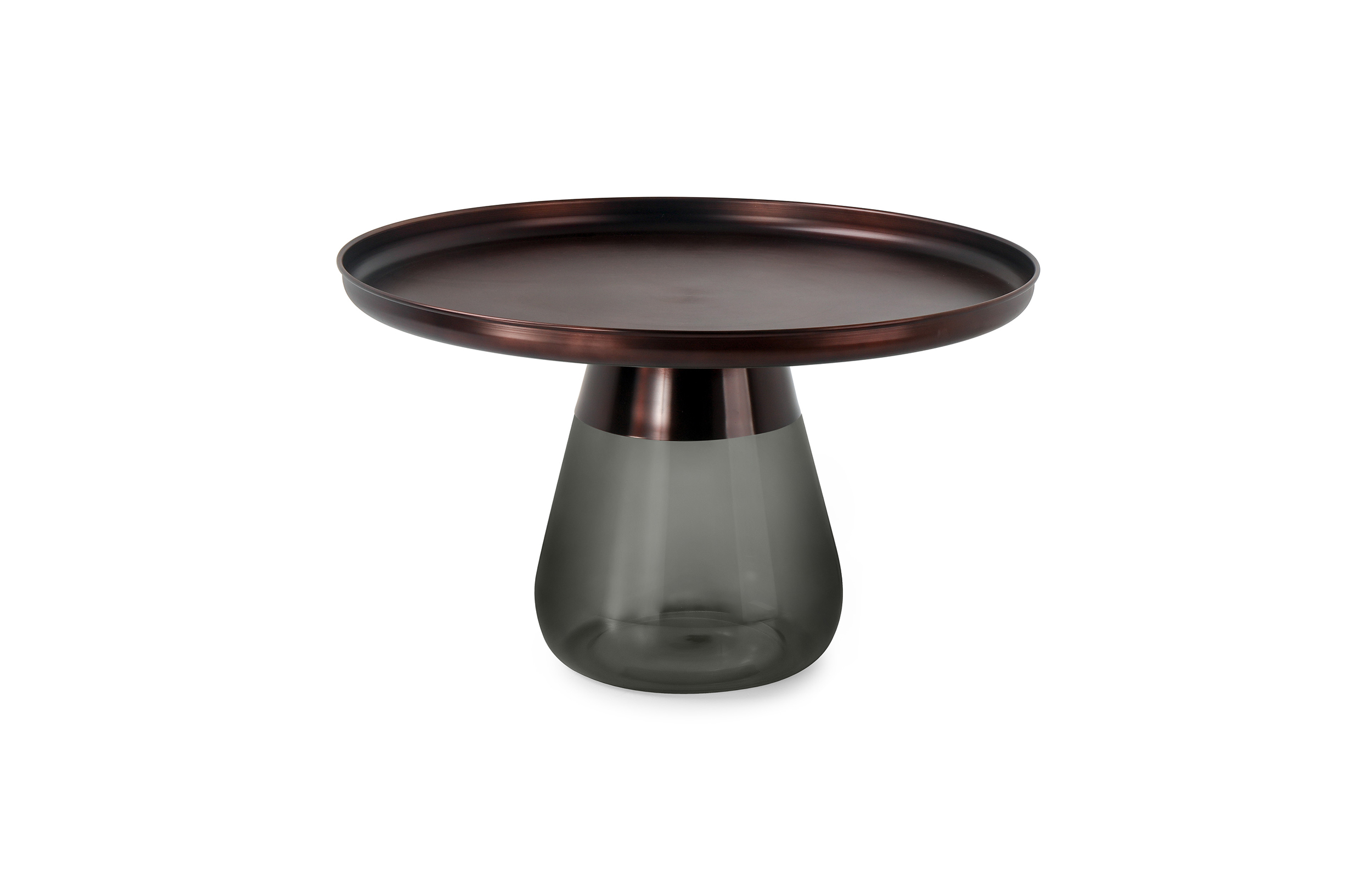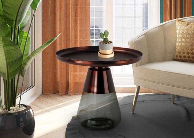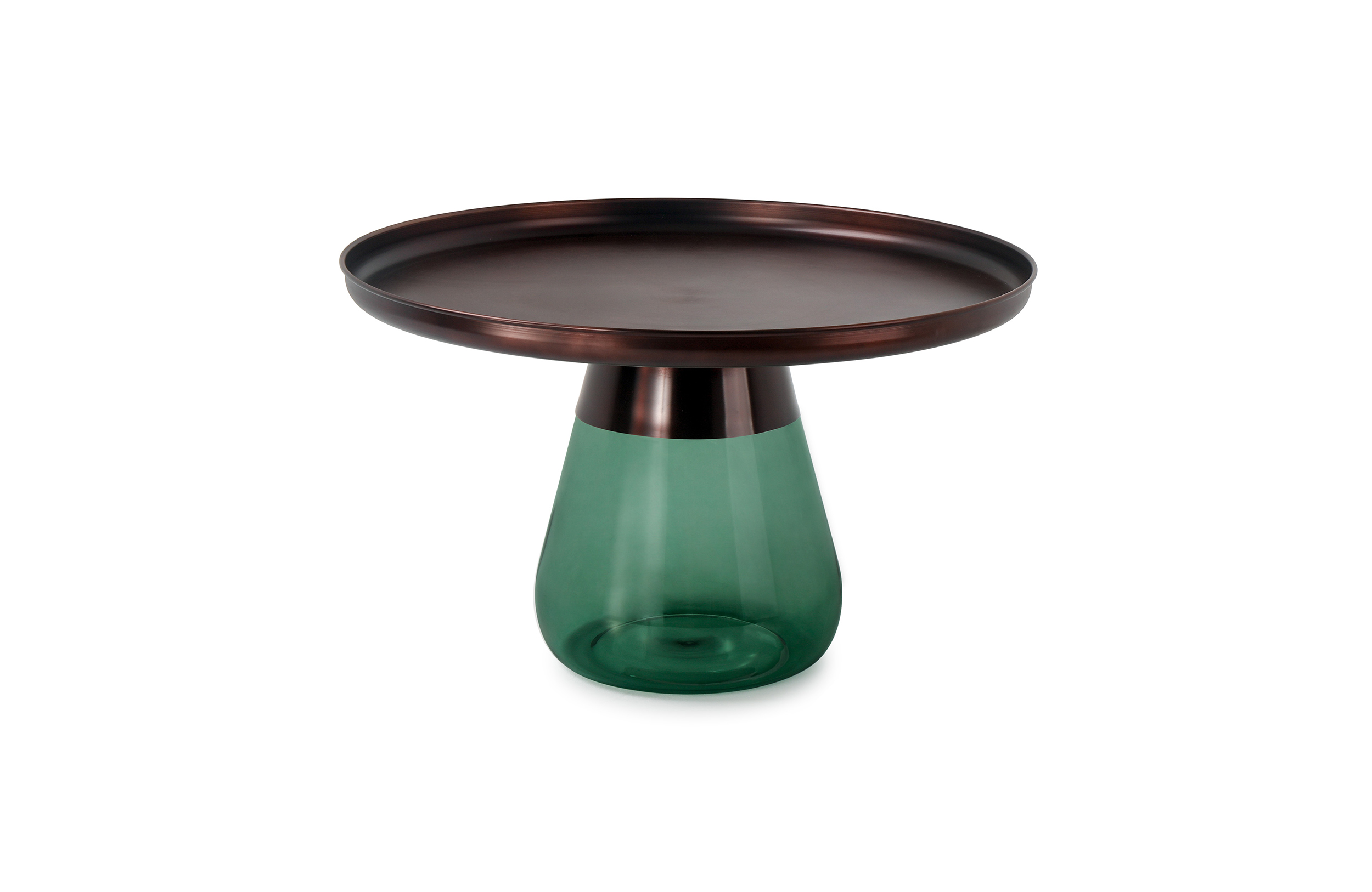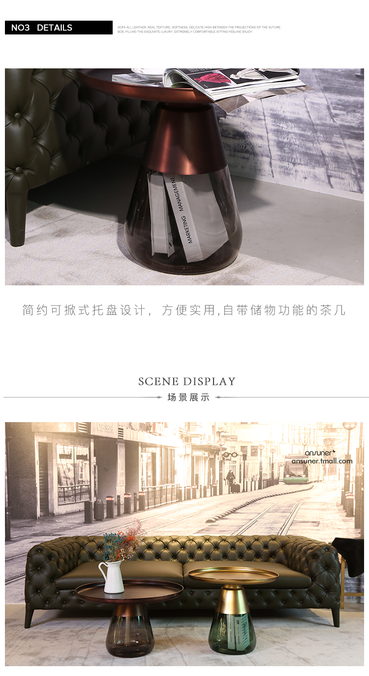 这款半透明带有色彩的玻璃和铝合金组成的手捧咖啡几,有着穿越历史长河的影子,竟像是宫廷画中拿出来的一般,底座的玻璃带给人温润如玉的视觉和触觉的通感。