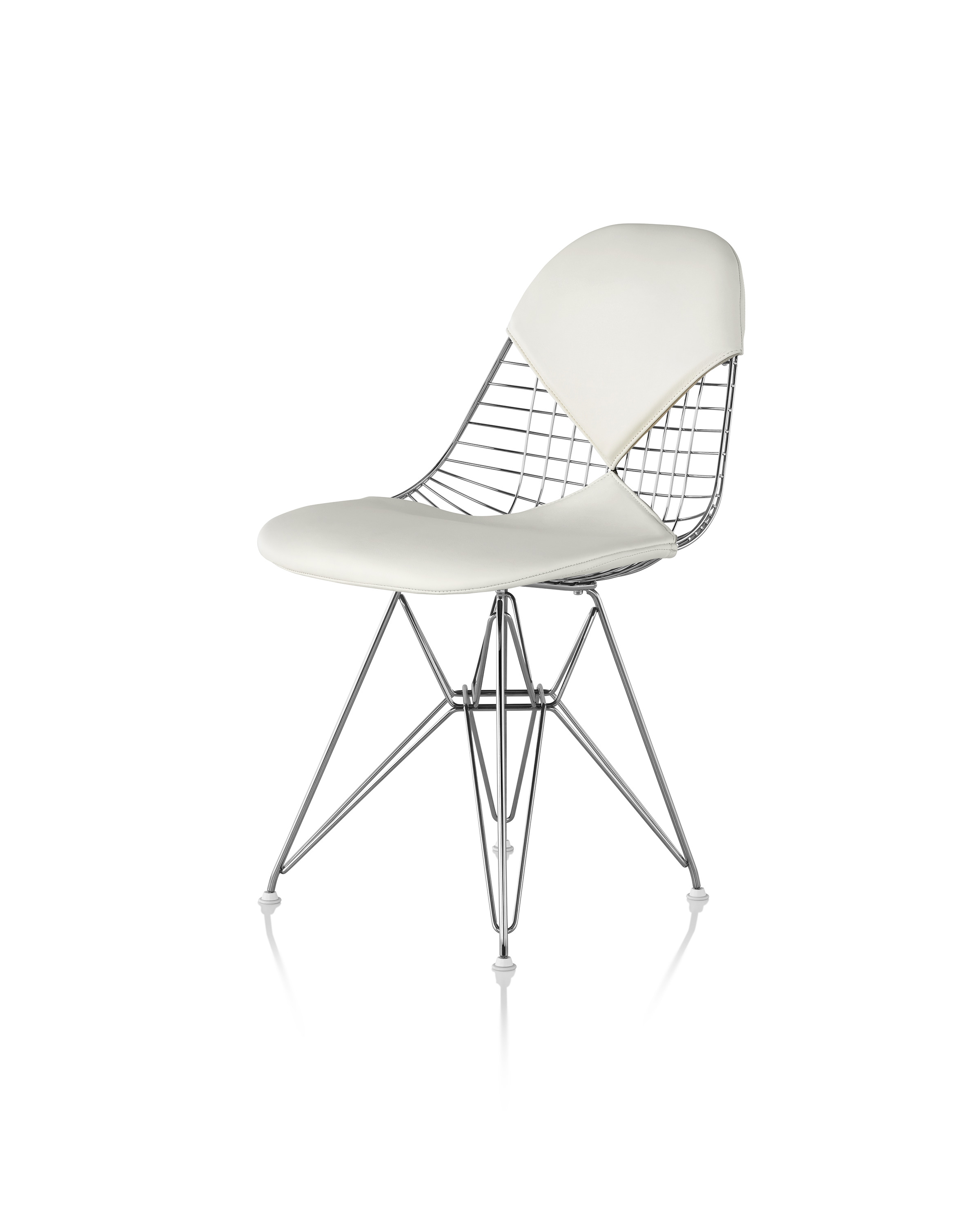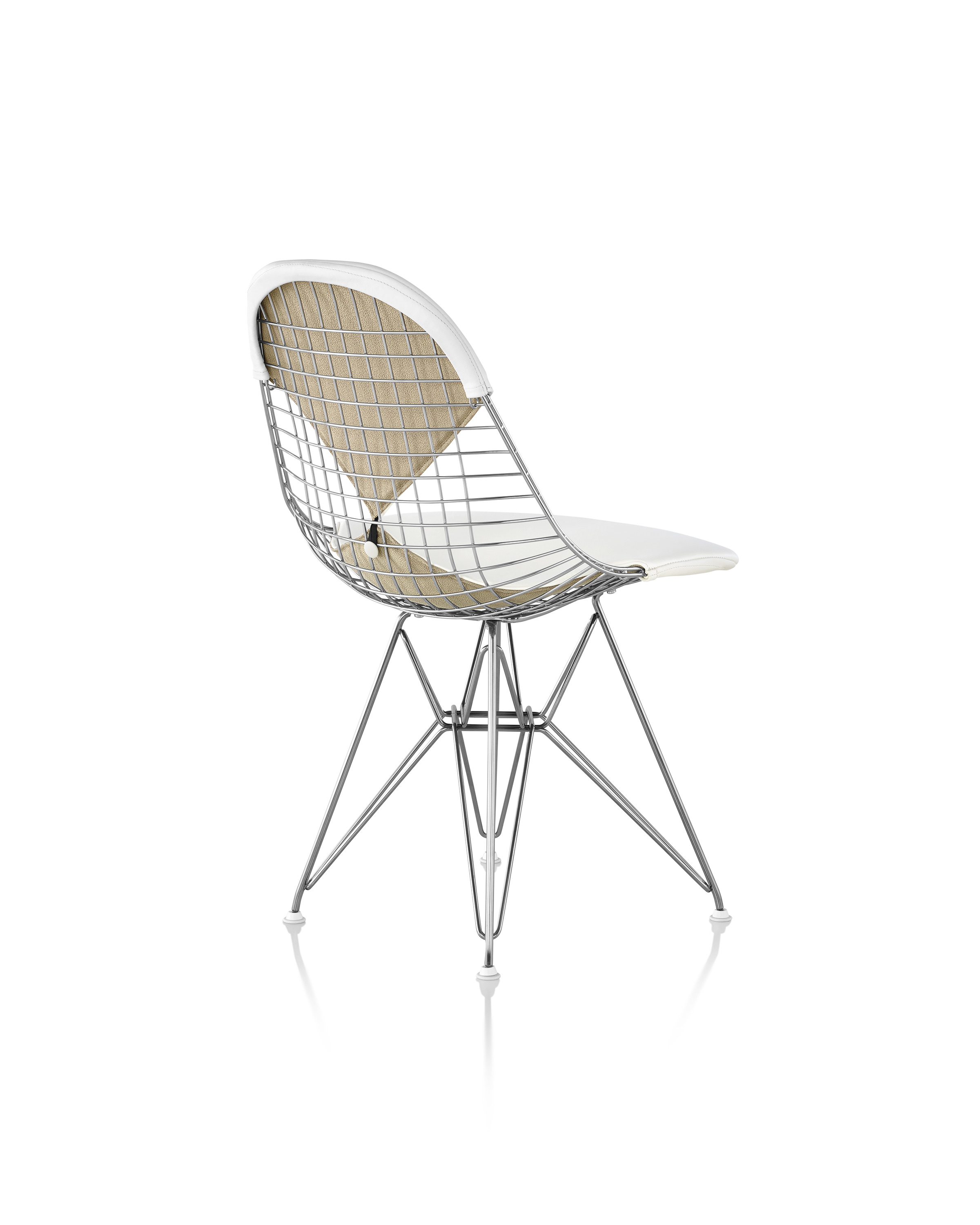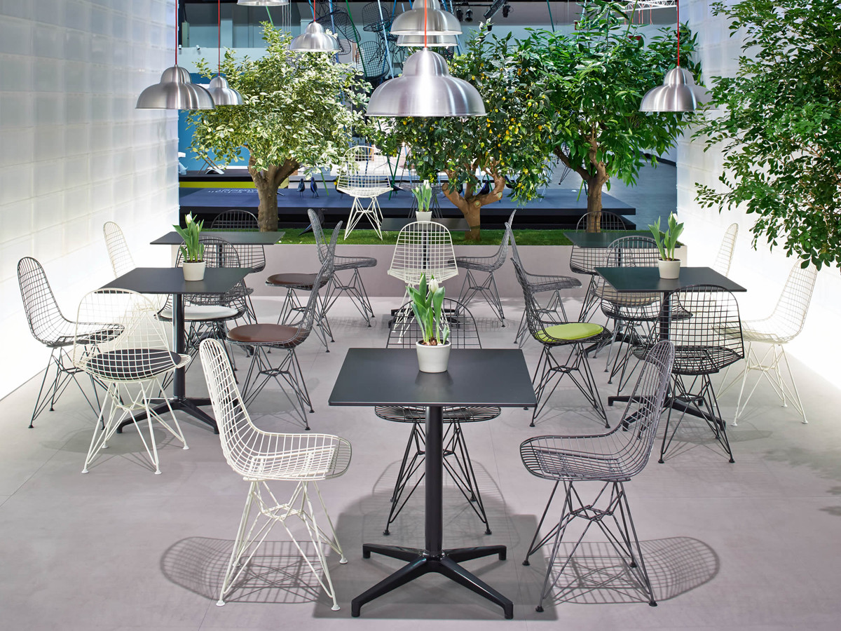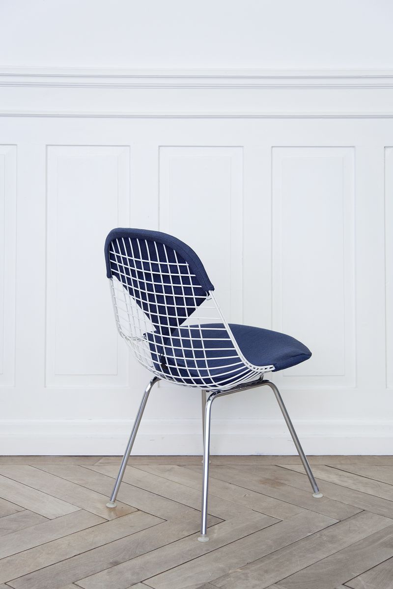 Charles & Ray Eames 1951 年發表的 Wire Chair 系列,以一片式有機網狀椅座,延伸變化出一系列不同椅腳及座墊搭配的單椅,這系列椅款輕巧透明的設計,在 60 年代可說是運用了當時最先進的技術來製作,靈感則是來自於鏤空的金屬收納籃,金屬條交織的椅座,彎曲的弧面不僅符合人體工學,在視覺上更具有穿透性。