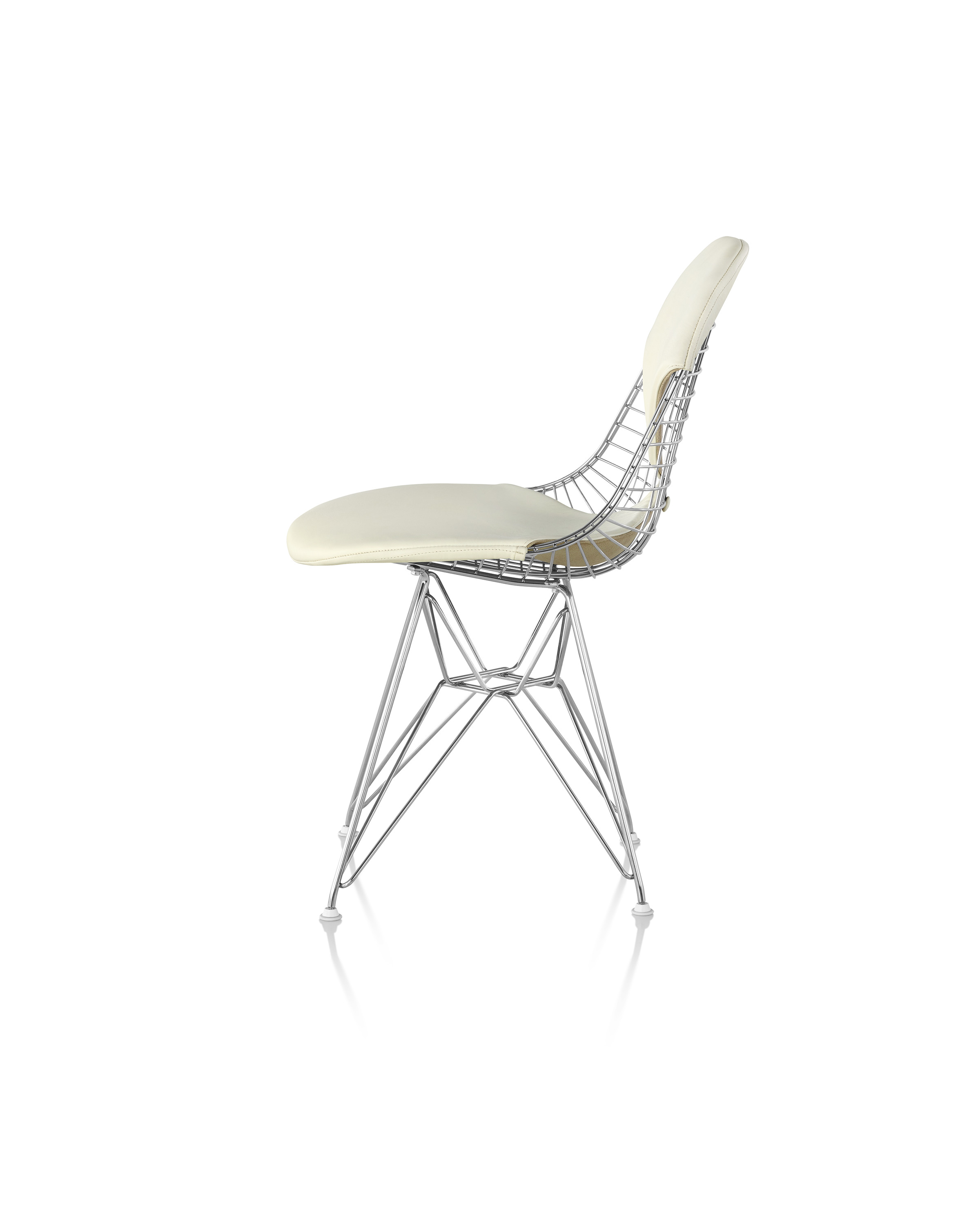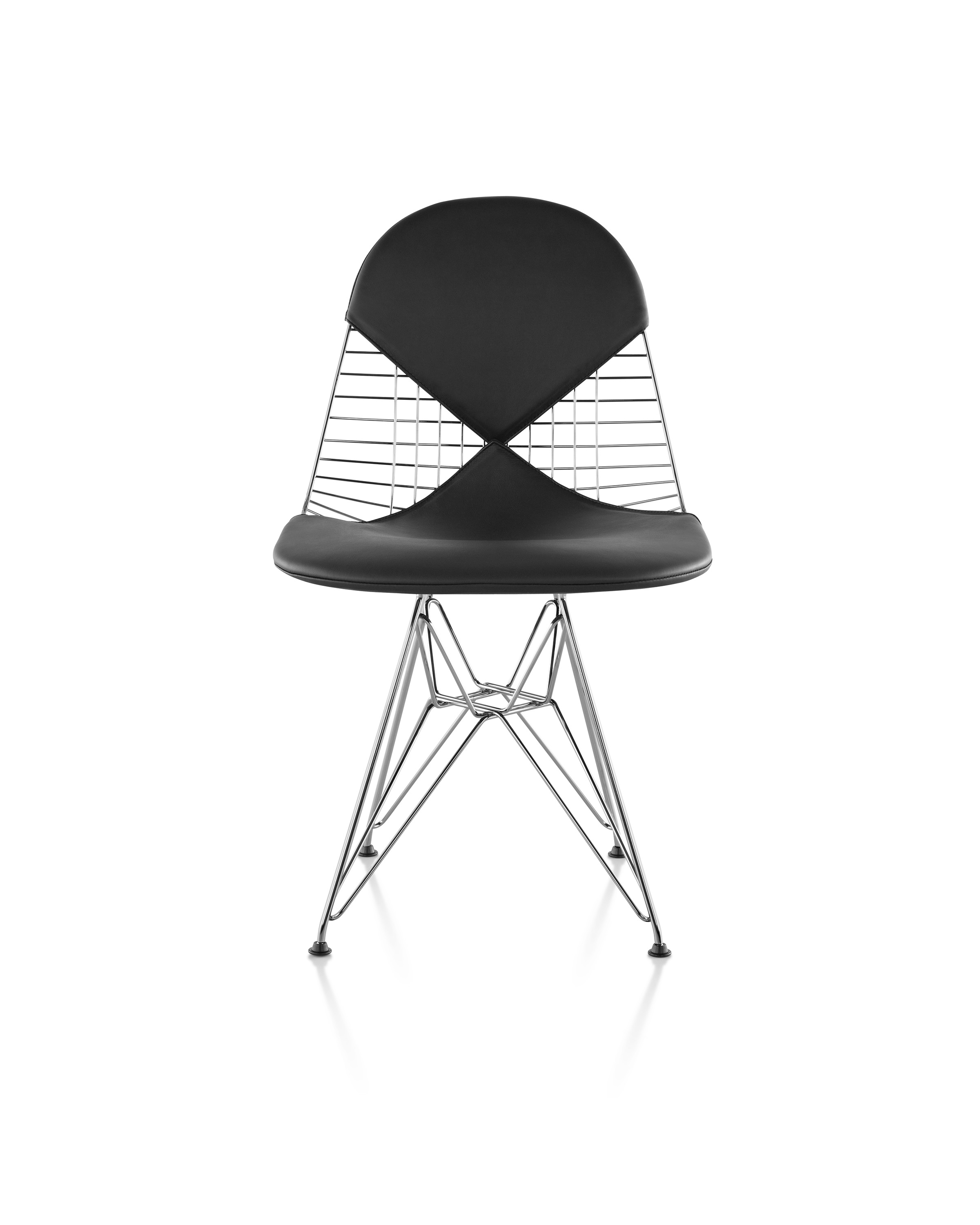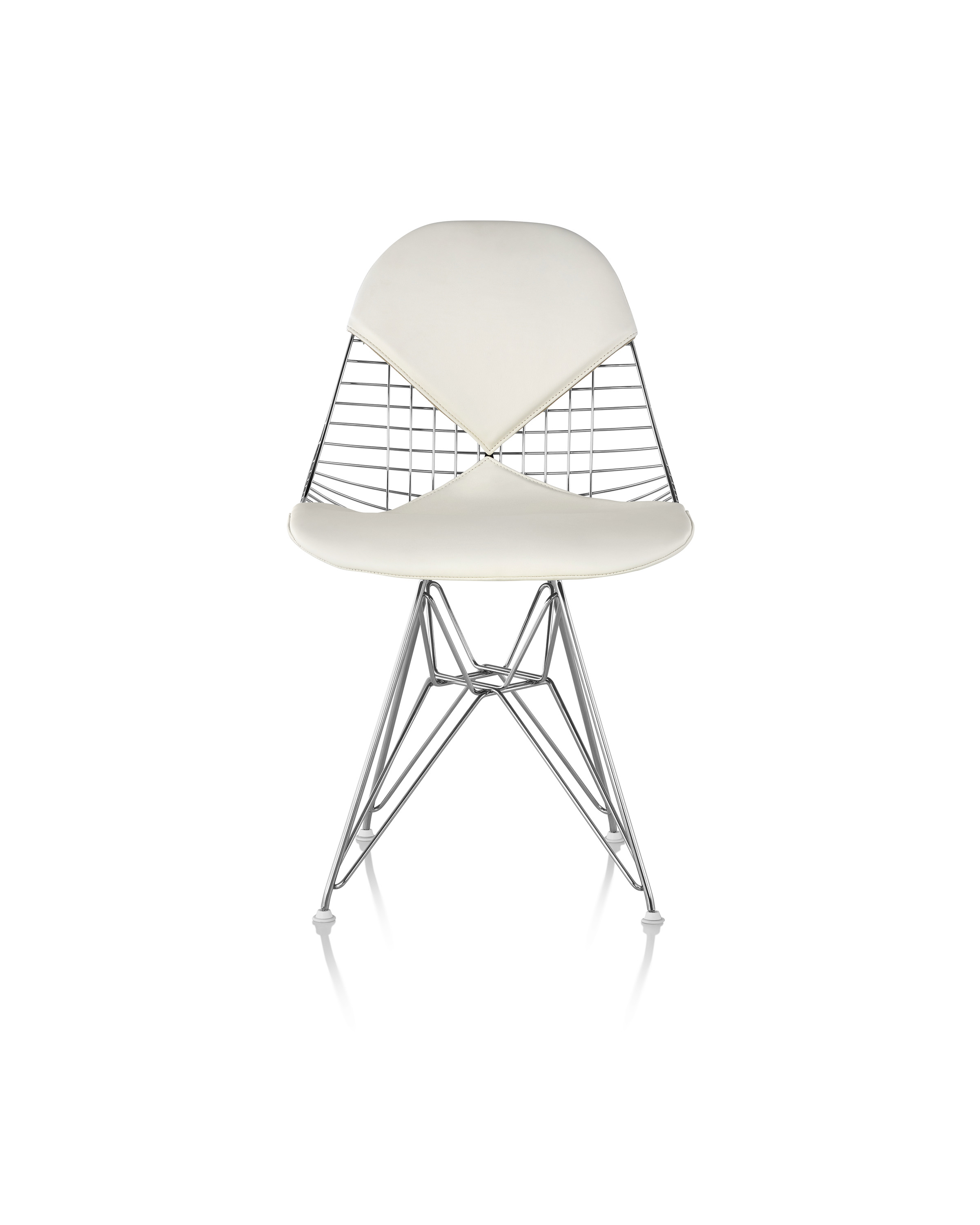 Charles & Ray Eames 1951 年發表的 Wire Chair 系列,以一片式有機網狀椅座,延伸變化出一系列不同椅腳及座墊搭配的單椅,這系列椅款輕巧透明的設計,在 60 年代可說是運用了當時最先進的技術來製作,靈感則是來自於鏤空的金屬收納籃,金屬條交織的椅座,彎曲的弧面不僅符合人體工學,在視覺上更具有穿透性。