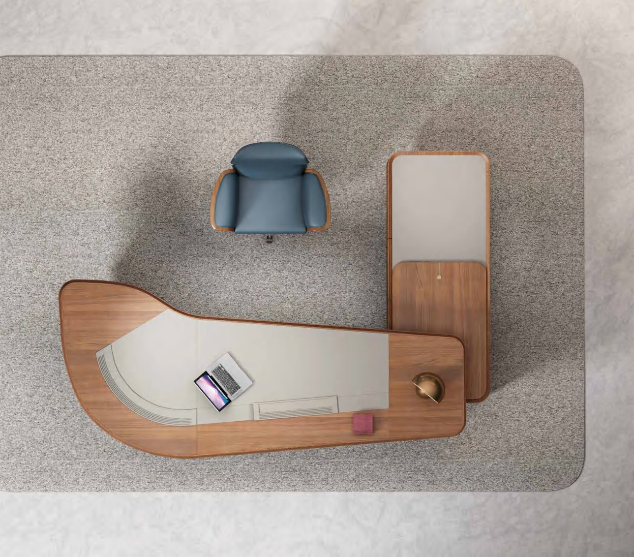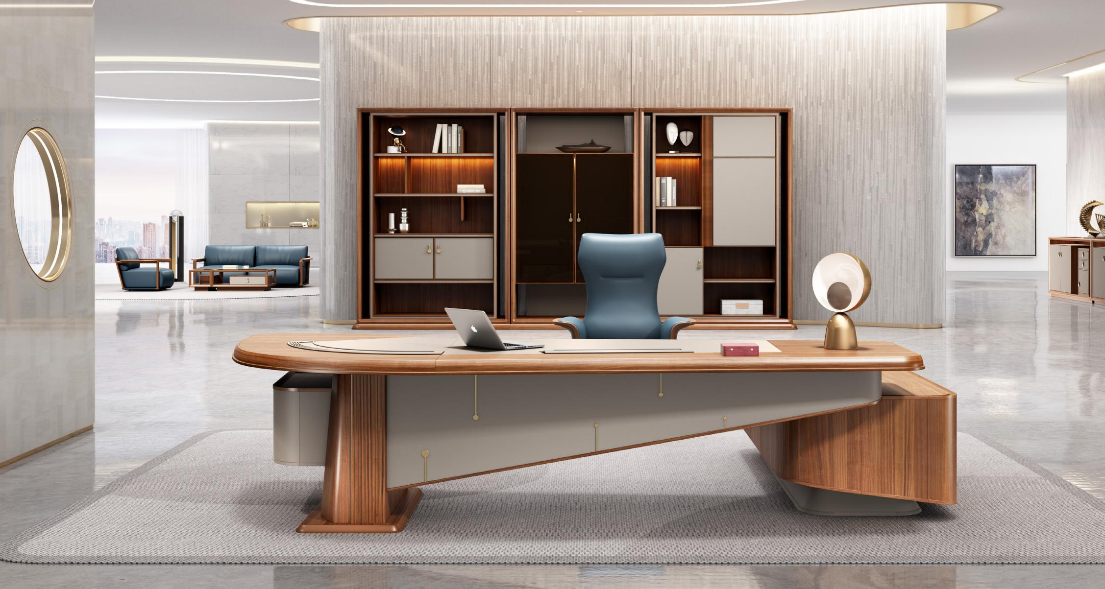 板木意式轻奢总裁系列办公家具整体完美体现了意大利轻奢美学从罗马柱中汲取灵感,流畅的曲线将金属的精致,木皮的典雅和皮革的细腻的自然融合,将各自的美妙发挥到极致,追求视觉上的极致舒适,触觉上的极度愉悦。错落有致,构造感。