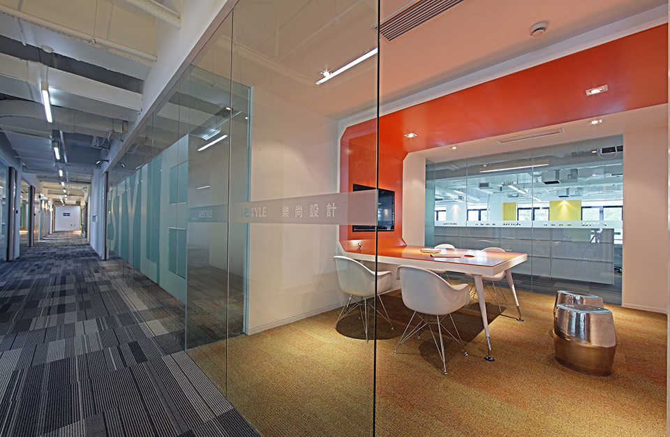 本案设计初期,乐尚的设计师们将公司自身“创意自由,规划严谨”的设计理念,将我们工作与客户交流的平台环境,最终分为两个追求的目标,其一展现并满足自身所需的平面功能外,将这一平面立体展开,实现了其二我们想要表达的空间感、层次感、质感,最终我们需要的乐尚在三维立体空间展现在我们面前。 初期的概念构想,一个时代的元素融入另一时代中,体现为取一种工业性质的混凝水泥墙体,恰到好处的融合到很现代的空间中。这两种质感不同的元素混合,精心的在设计师的深化思维中,重新进行了空间搭配,二者发生了很巧妙的发酵,同时,大面积采用玻璃隔断,让每个比邻区域通透感增强,与此同时,乐尚的抹茶绿及橙色标准色调,恰到好处穿插在每个区域中。而这些恰恰体现在不同场合下的整体视觉感,干净整洁的线条贯穿空间始终同时力求突出舒适性。各区域即独立又相互融合,亦可根据公司的使用和发展灵活调配。布局上层次分明,以一致的线条走向自然过渡到每个办公空间,以简洁的线条表现形式美,再配以恰到好处的灯光,营造出一个简洁明朗、自然通透的现代空间。用朴素的手法表现空间的本质,传达文化的内涵。营造出一个充满张力,移步逸景的办公空间。