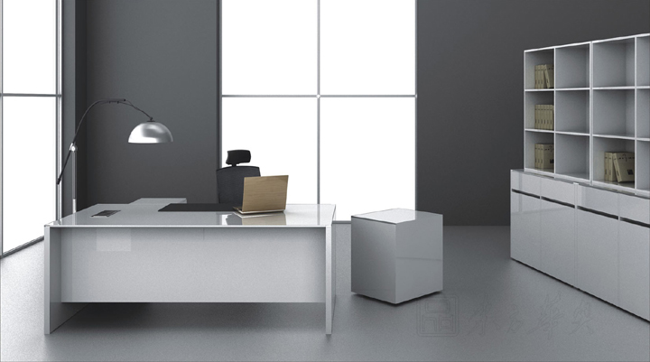 桌面配置有先进的多功能电动旋转插座,满足现代办公的要求。镜面高光的环保UV漆饰面,漆膜饱满、平整光亮,充分体现了现代办公环境得到宁静与明亮。